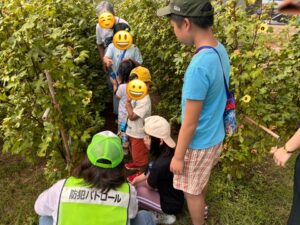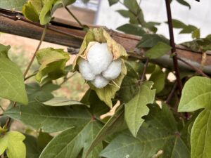 畑に綿が実り、ほわほわとした綿毛(種子毛)が顔を出しています。皆んな、「あっ!ここにあるょ〜!」「木から綿が獲れるって不思議やね」…っと興味津々で収穫を体験!