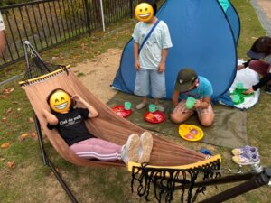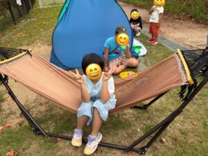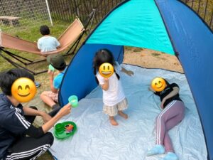 おやつの後は、テント内で遊んだり、ハンモックでリラックスしたり、