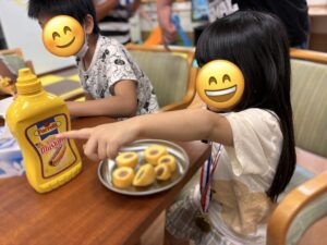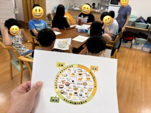 今日は「アメリカンドッグの日」にちなんで、食育プログラムの一環として、食べ物のルーツやバランスの良い食事についてみんなで学びました。