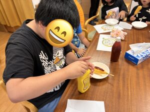 アメリカンドッグをきっかけに、食べ物のこと・体のことを楽しく学ぶことができた一日でした。