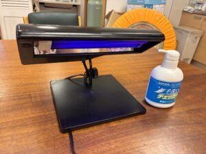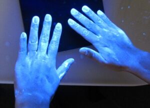 3. ブラックライトで照らして、洗い残しが光っている箇所をチェック