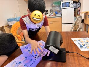 などなど、ブラックライトで照らされた自分の手にビックリする子どもたちの声が飛び交いました。