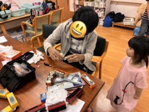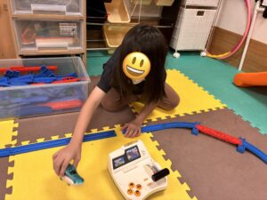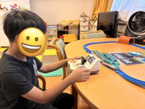 さらに、プラレールのコントローラーを使って、「運転手ごっこ」も楽しみました。