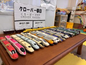 クローバー春日放課後等デイサービスでは、鉄道ファンにとって特別なこの日に、子どもたちと一緒に皆んな大好き、プラレールを使ったプログラムを開催しました。