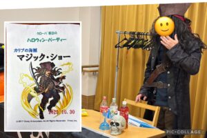 海賊に扮したスタッフが登場し、ペットボトルを使ったマジックを披露!