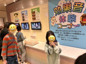 「効果音コーナー」では、風の音や雨の音、波の音、雪の足音など、日常で耳にする効果音を自分の手で再現することができます。