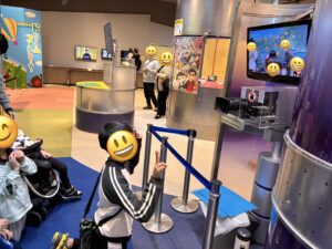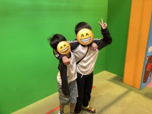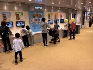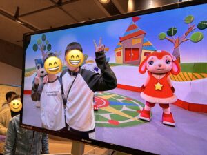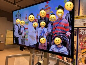 「わくわくスタジオ」では放送のしくみ(クロマキー)を使ったテレビの中の世界を楽しく体験できました。