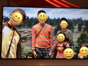 画面に自分と恐竜が並ぶ様子に「すご〜い!」