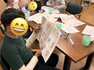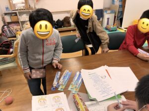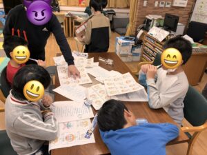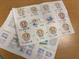 続いては、歯科衛生士さんが作ってくださったプリントを見ながら、歯磨き練習です。