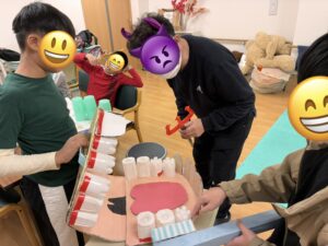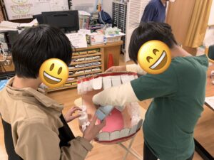 スタッフ手作りの大きな歯列模型も使って、しっかり歯磨きの手順を確認して頂きましたョ