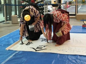 12月18日には、書道に興味がある子ども達が龍華図書館へ行き、「龍華の今年の漢字」の発表を観覧しました。