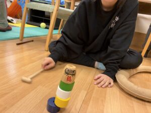 慎重に木づちを使う子ども達に、「そこ、上手だよ」「次はいけるよ」と温かい応援の声がかかり、成功すると拍手が起こりました。
