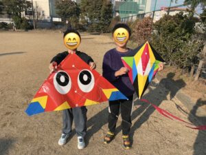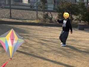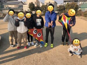 先ずは、子ども達だけで近隣の春日公園で凧揚げです。