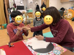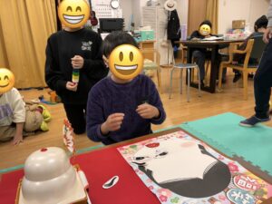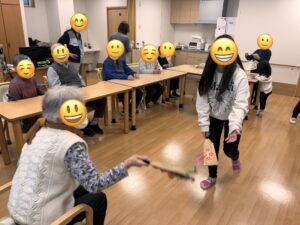 クローバー春日放課後等デイサービスでは、新年の行事として高齢者デイサービスの利用者の皆さまとの交流会を行い、お正月ならではの伝統遊びを一緒に楽しみました。