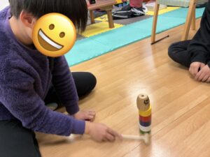 この日は、凧揚げ・だるま落とし・福笑い・独楽(こま)回しに挑戦。