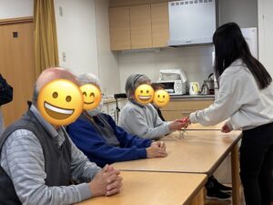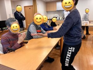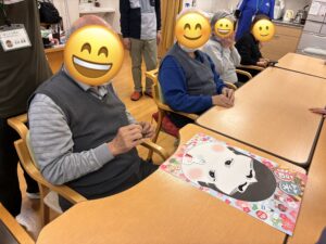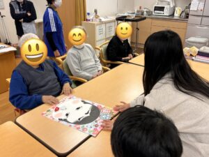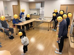 凧揚げのあとは、はくとう春日デイサービスセンターにお邪魔して、おじいちゃん、おばあちゃんとの交流会です。