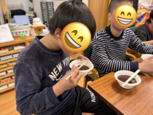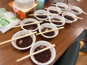 みんなでぜんざいにしていただきました。
