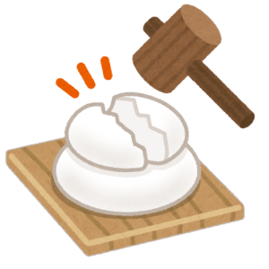 鏡餅は包丁を使わず、トンカチでコンコンと割るのが正式なやり方。