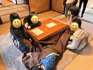 まずは和室でこたつを囲み、ほっこりとした時間を過ごしました。