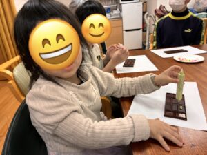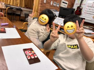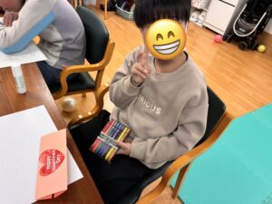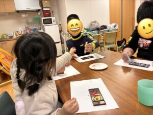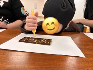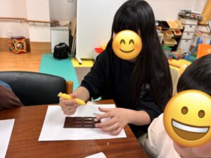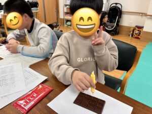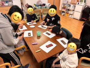 クローバー春日では、食育プログラムの一環として、バレンタイン・デーに向けて、板チョコをデコペンでデコレーションしました。