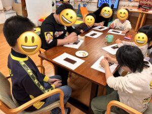 「ここは○○色にしようかな?」「名前を書こう!」と、みんな真剣な表情。
