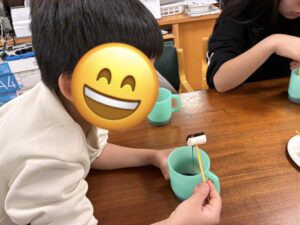 この日は、チョコづくし…って事で、マシュマロにチョコシロップをディップして食べて頂きました。