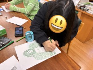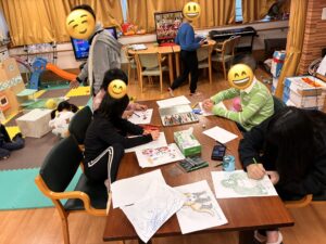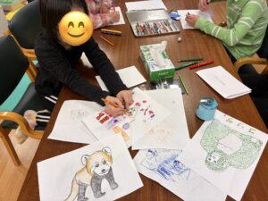「ライオンが見たい!」「キリンを近くで見てみたい!」と、それぞれが楽しみにしている動物を思い浮かべながら、のびのびと描いていました。