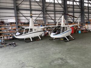 中に入ると、目の前には真っ白でピカピカの飛行機やヘリコプターがずらりと並び、
