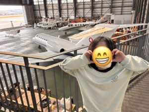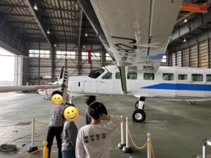 整備中の飛行機を間近で見ることができ、スタッフの方から飛行機の仕組みや整備のお仕事についても丁寧に教えていただきました。