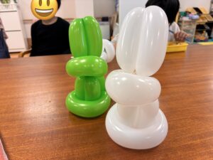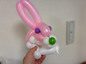今回のテーマはイースターも近いので、「うさぎ」とし、見本も用意いたしましたが、子どもたち一人ひとりの発想を大切にし、自由に風船をねじって制作に取り組んでいただきました。