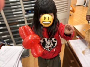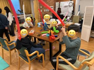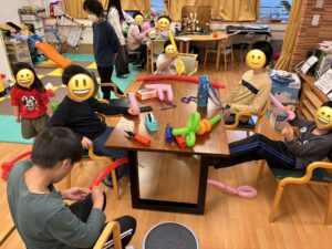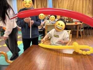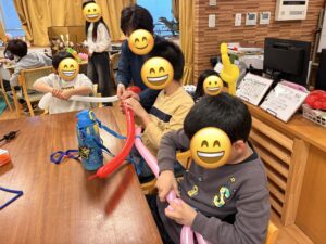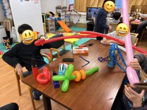 今回の活動では、風船をねじることで手先の巧緻性を養うとともに、創造力や表現力を育むことをねらいとしています。今後も、お子様が楽しみながら成長できるような活動を大切にしてまいります。