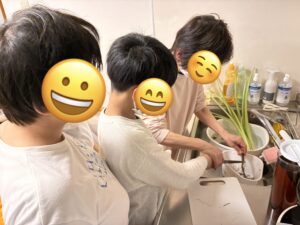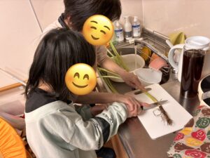 調理では、リレー形式で、包丁を使って食材を切ったり、炒める工程に挑戦したりと、それぞれが役割を持って取り組みました。