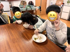 出来上がった料理をみんなで「いただきま〜す!」と試食すると…