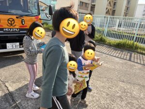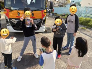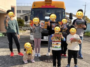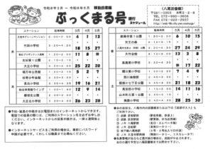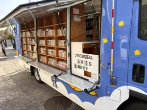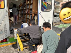 クローバー春日でも、高美南小学校へ八尾市移動図書館「ぶっくまる号」を利用し、本を借りに行きました。