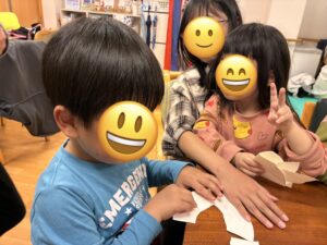 「ここに貼ろうかな」「この形がいいかな」と考えながら、楽しんで取り組む様子が印象的でしたョ