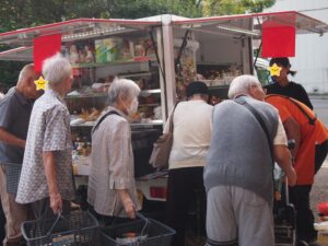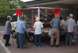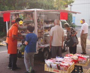 移動スーパーとくし丸 2025.10.08 グリーンデル柏原 皆さんお待ちかねの移動スーパーとくし丸が来てくれる事になりました。 最初の訪問日にはどんなものがあるか興味津々に見ておられました。 商品を見ながらの買い物はとても楽しそうでした。