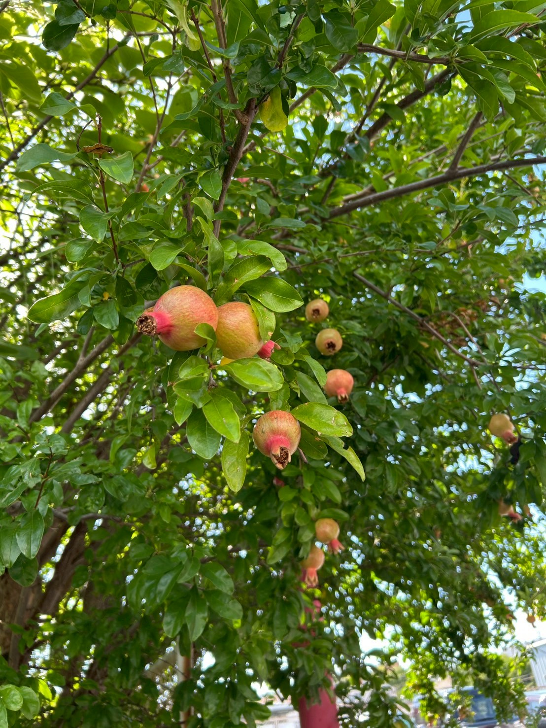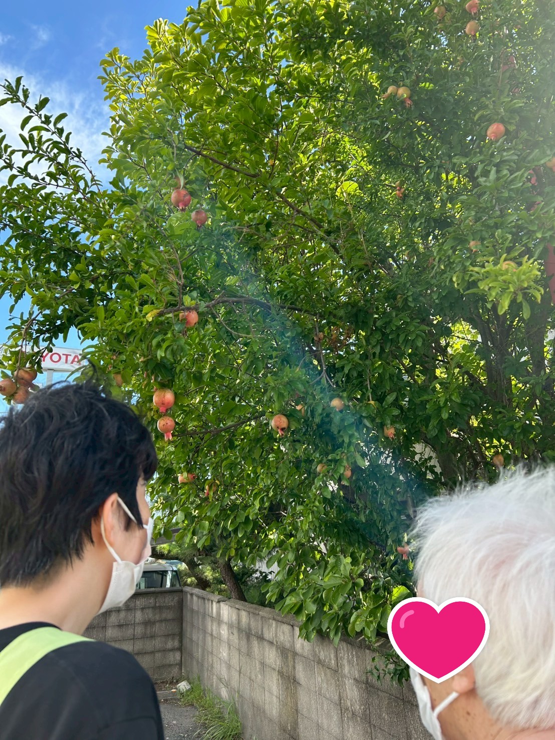 近づいてみると、枝にはオレンジ色に色づいた大きなザクロの実がなっていました。