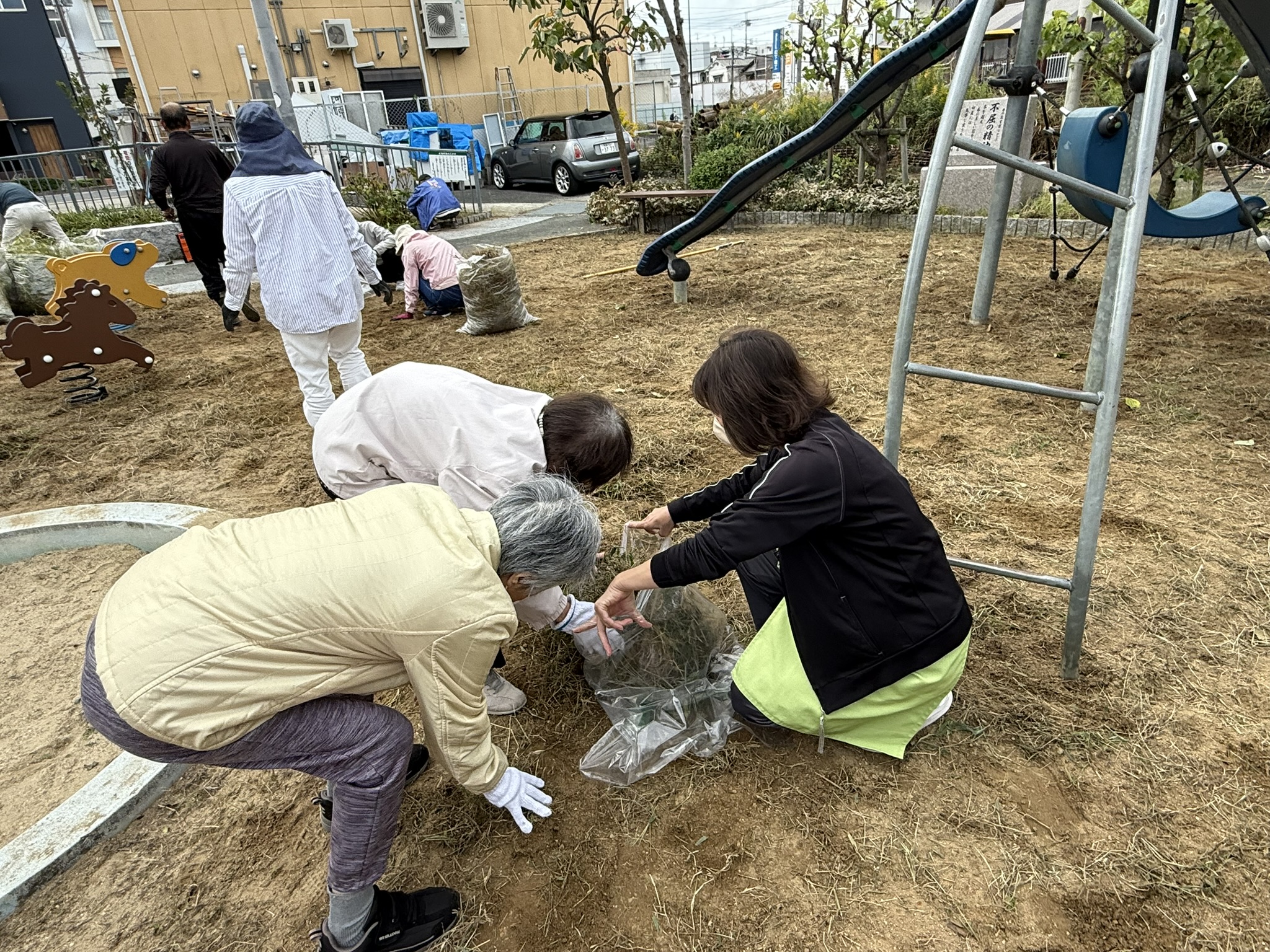 毎年この時期に行われる、地域のちびっこ広場(中ノ島公園)周辺の一斉清掃に参加しました。
