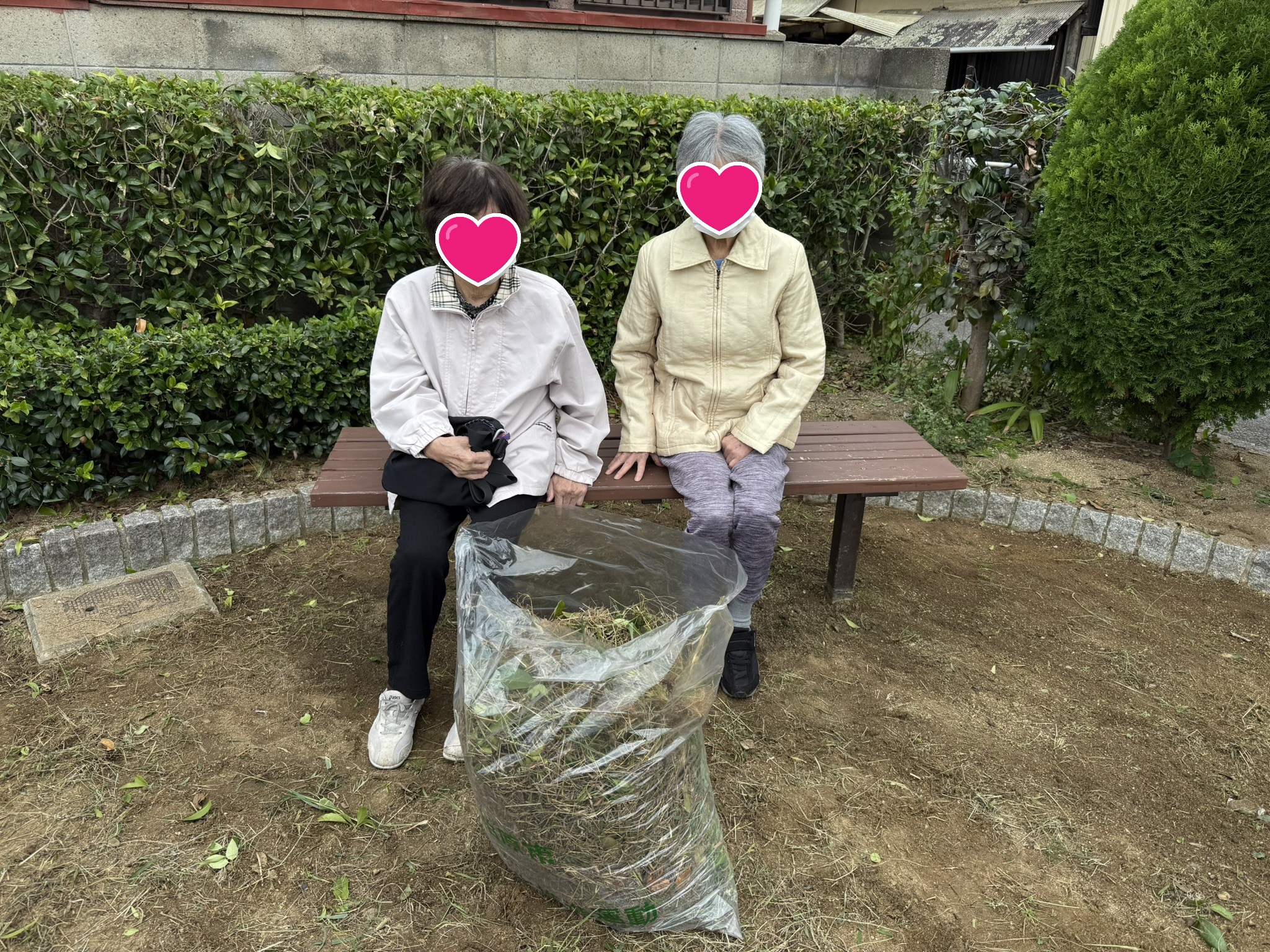 手慣れた様子でくま手を持ち、草や落ち葉を集めたり、軍手をはめて草抜きををしてくださいました😄