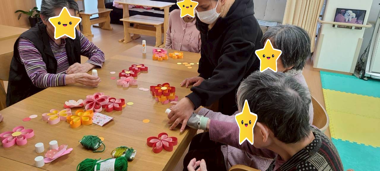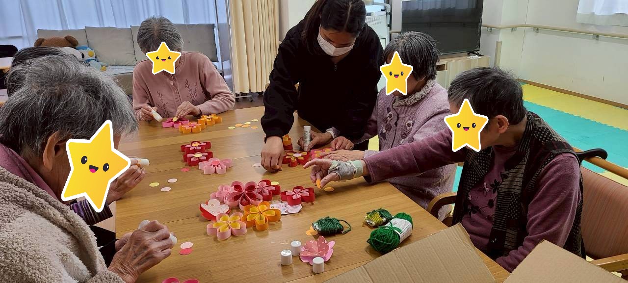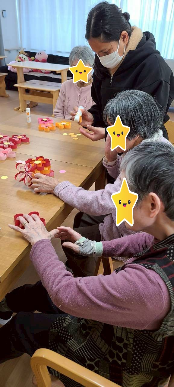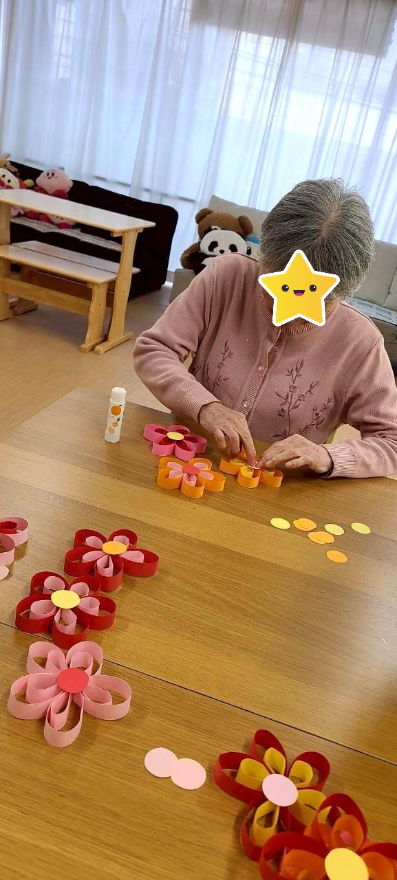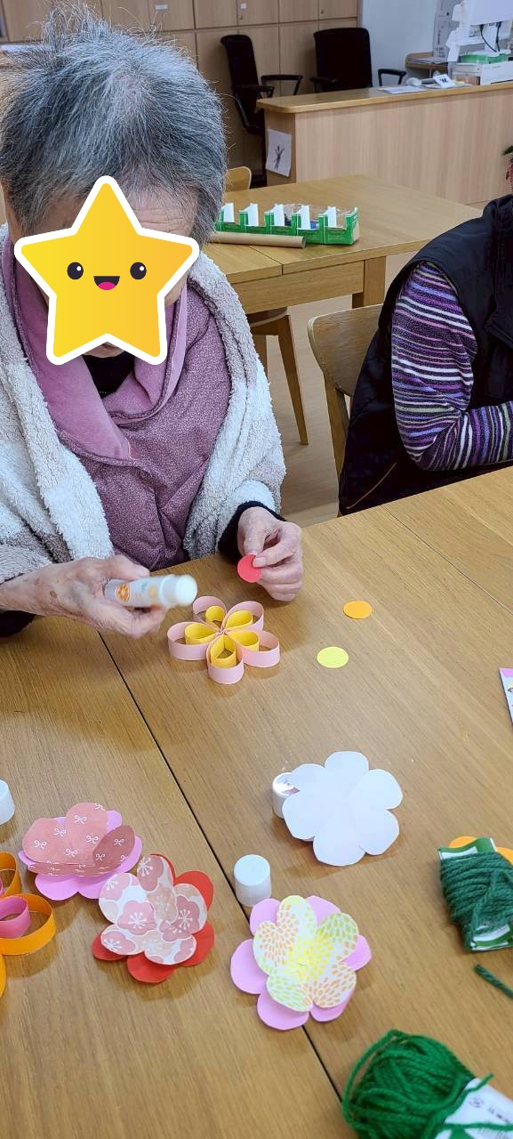 完成した梅の花を見て、「かわいい🥰」「きれいにできたね。」と笑顔で眺めておられ、納得の出来栄えとなりました。